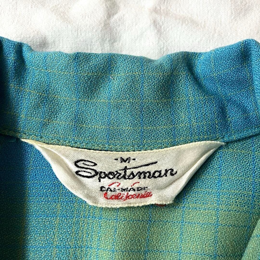 USA製 50s〜60s VINTAGE オンブレチェック レーヨンシャツ 開襟