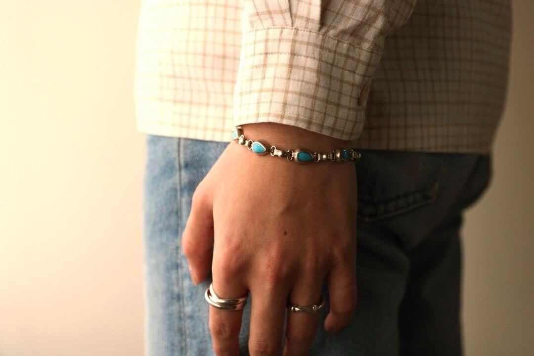 上質なメキシコのシルバー925×ターコイズが埋め込まれているブレスレット。