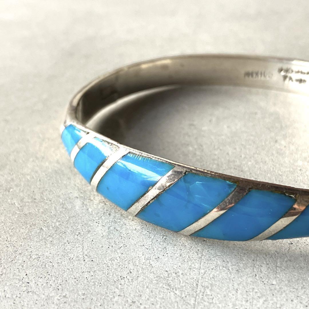 上質なメキシコのシルバー925にターコイズが埋め込まれた50〜60年代のバングル。