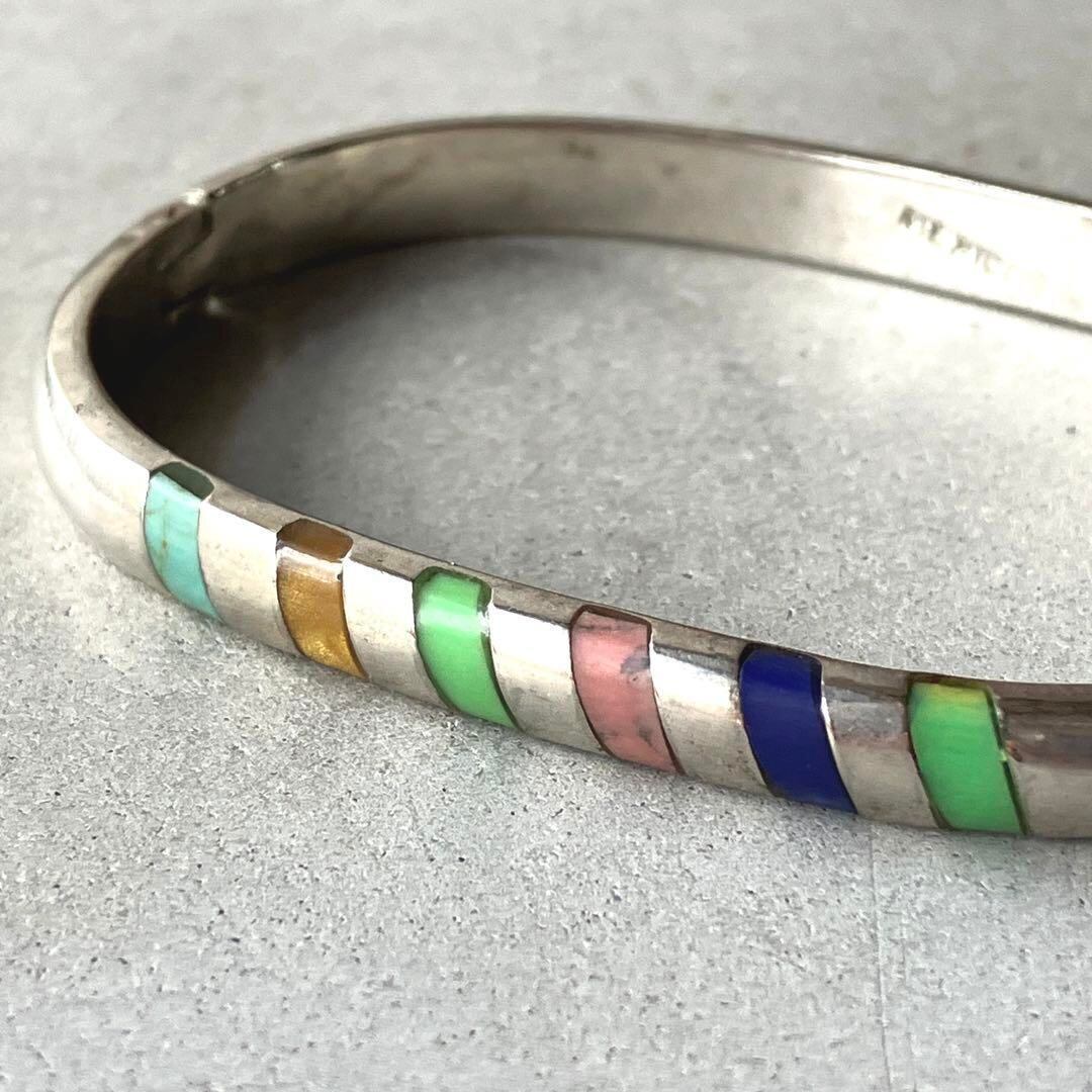 上質なメキシコのシルバー925に様々な天然石が埋め込まれた50〜60年代のバングル。