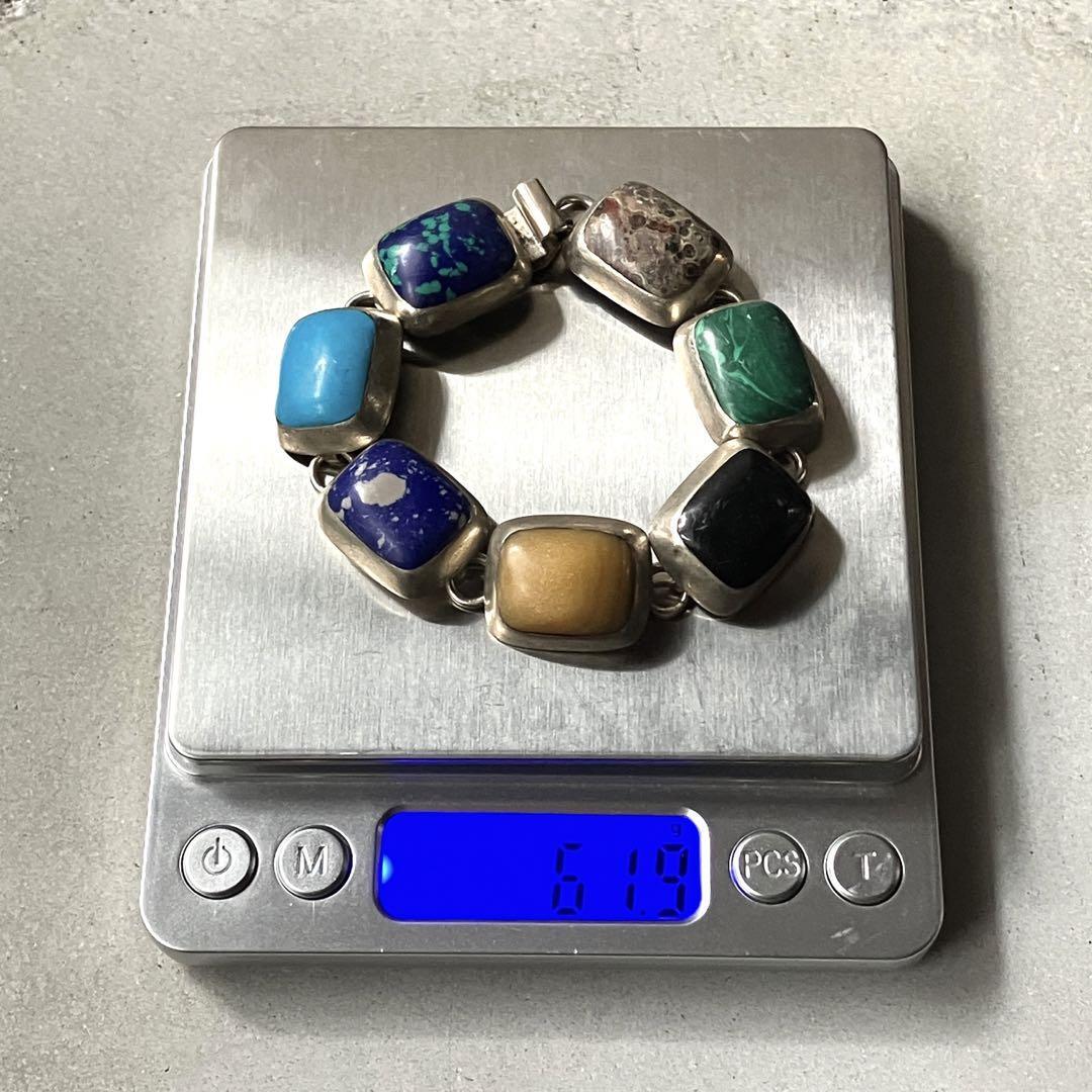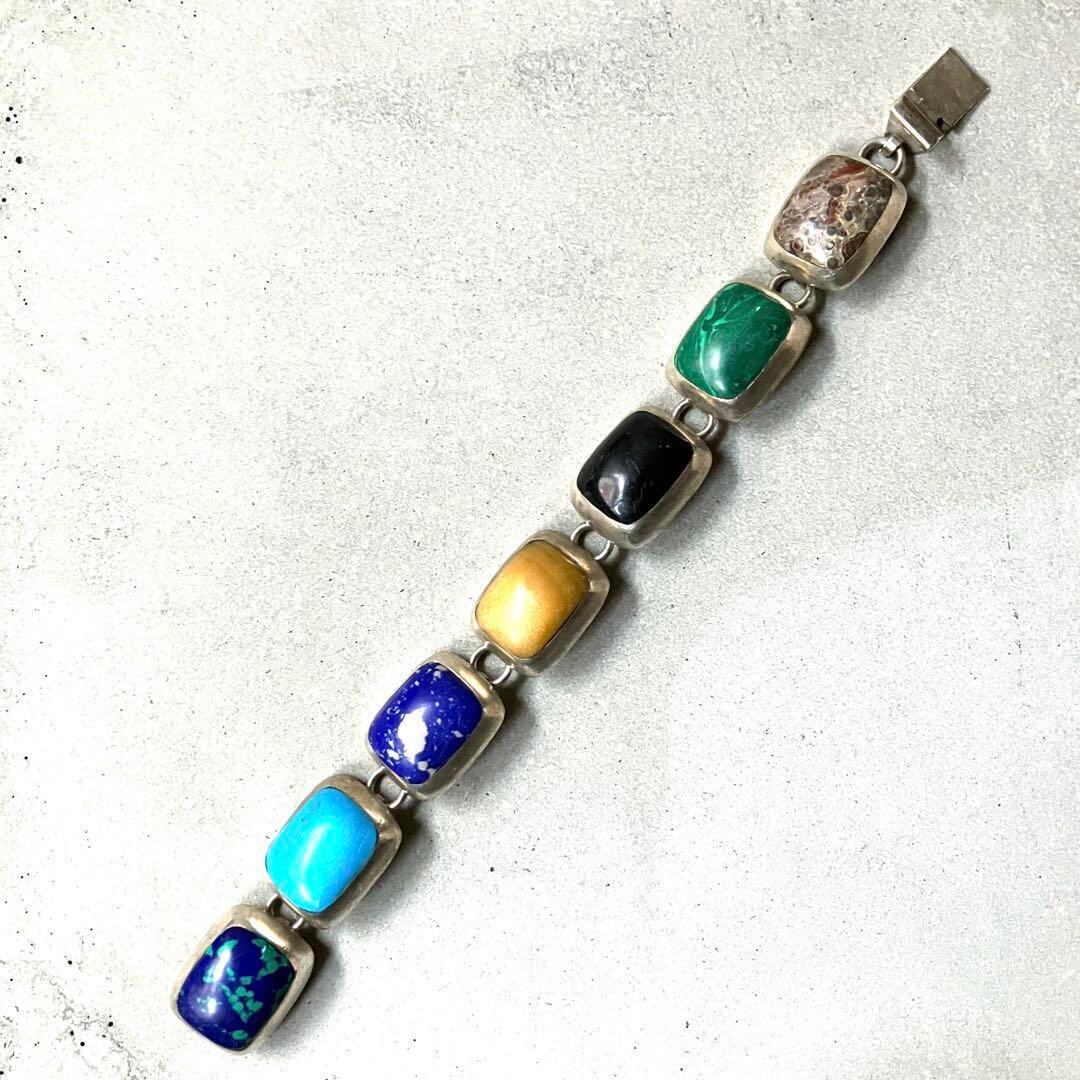 希少 メキシコ製 ヴィンテージ HEAVY GEMSTONEブレスレット 925