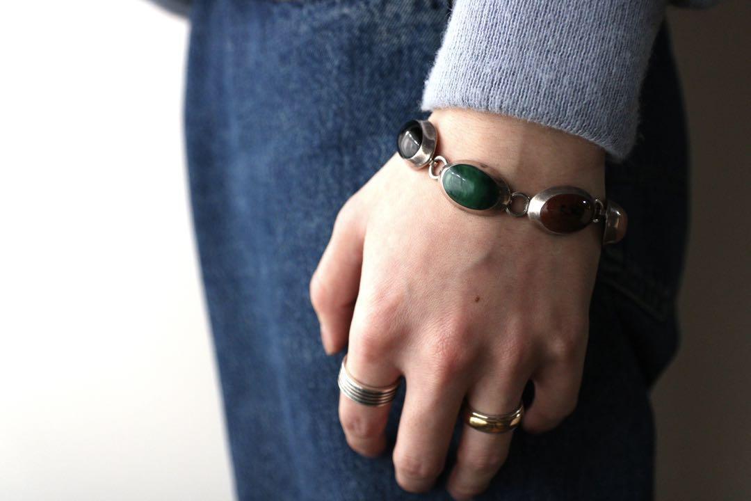 希少 メキシコ製 ヴィンテージ HEAVY GEMSTONEブレスレット 925